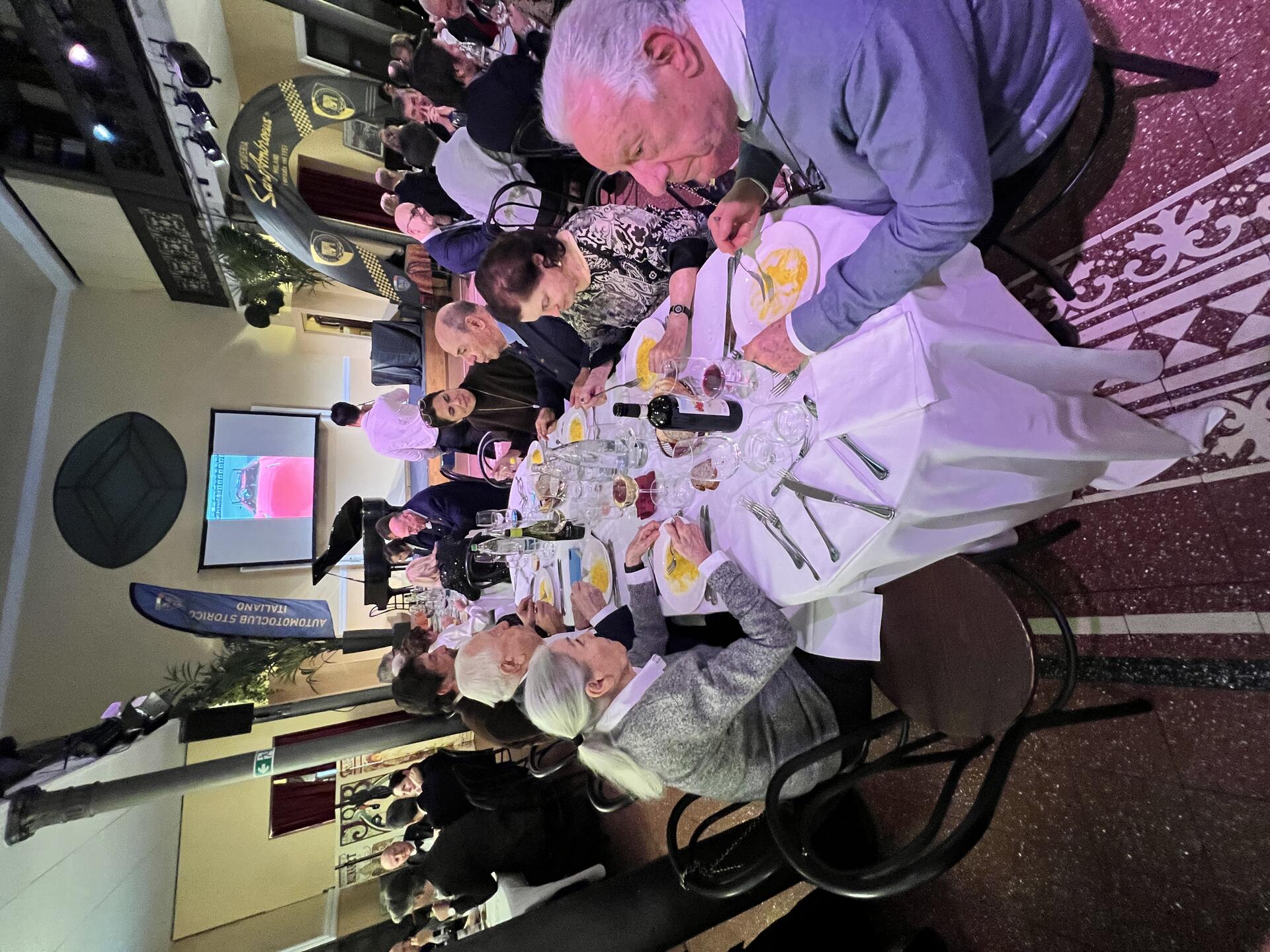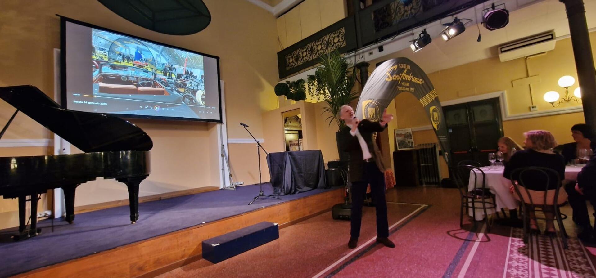 Mercoledi 14 gennaio 2026, la Sant Ambroeus ha festeggiato il nuovo anno con una cena sociale che ha visto più di cento soci partecipare, nel salone liberty dell’Osteria del Treno, tra brindisi, racconti e festeggiamenti dei nostri amici che partecipano attivamente a gare di vario tipo con i colori della Scuderia. Come concludere al meglio la serata se non scatenandoci in balli con musica rigorosamente anni ‘70/80 e luci stroboscopiche?? Ed ora prepariamoci agli appuntamenti per i festeggiamenti dei 75 anni di vita della Sant Ambroeus.